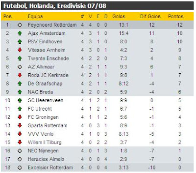 Começamos pelo já referido triunfo caseiro do AZ Alkmaar. A turma de Alkmaar recebeu, venceu e convenceu um NEC amorfo. O jogo ficou decidido na primeira parte: Simon Cziommer, Kew Jaliens e Ari encarregaram-se de marcar os golos. No segundo tempo, ainda houve tempo para Demy de Zeeuw fazer o gosto ao pé e fixar o marcador nos 4-0.