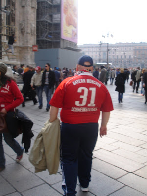 Após passagens por Salzburgo e por Innsbruck nos dias seguintes sem nada a registar (não consegui ver os estádios), fiquei em Milão durante duas noites. Estive em vias de ir a San Siro, porém impossibilidades logísticas obrigaram-me a “só” ver o fabuloso centro histórico da metrópole italiana. Não tentei sequer comparar bilhetes, mas duvido que os houvesse no dia do jogo. Mesmo assim, foi-me possível ver as ruas vestidas de vermelho, não só com adeptos do AC Milan, como também, e principalmente, dos alemães do Bayern.